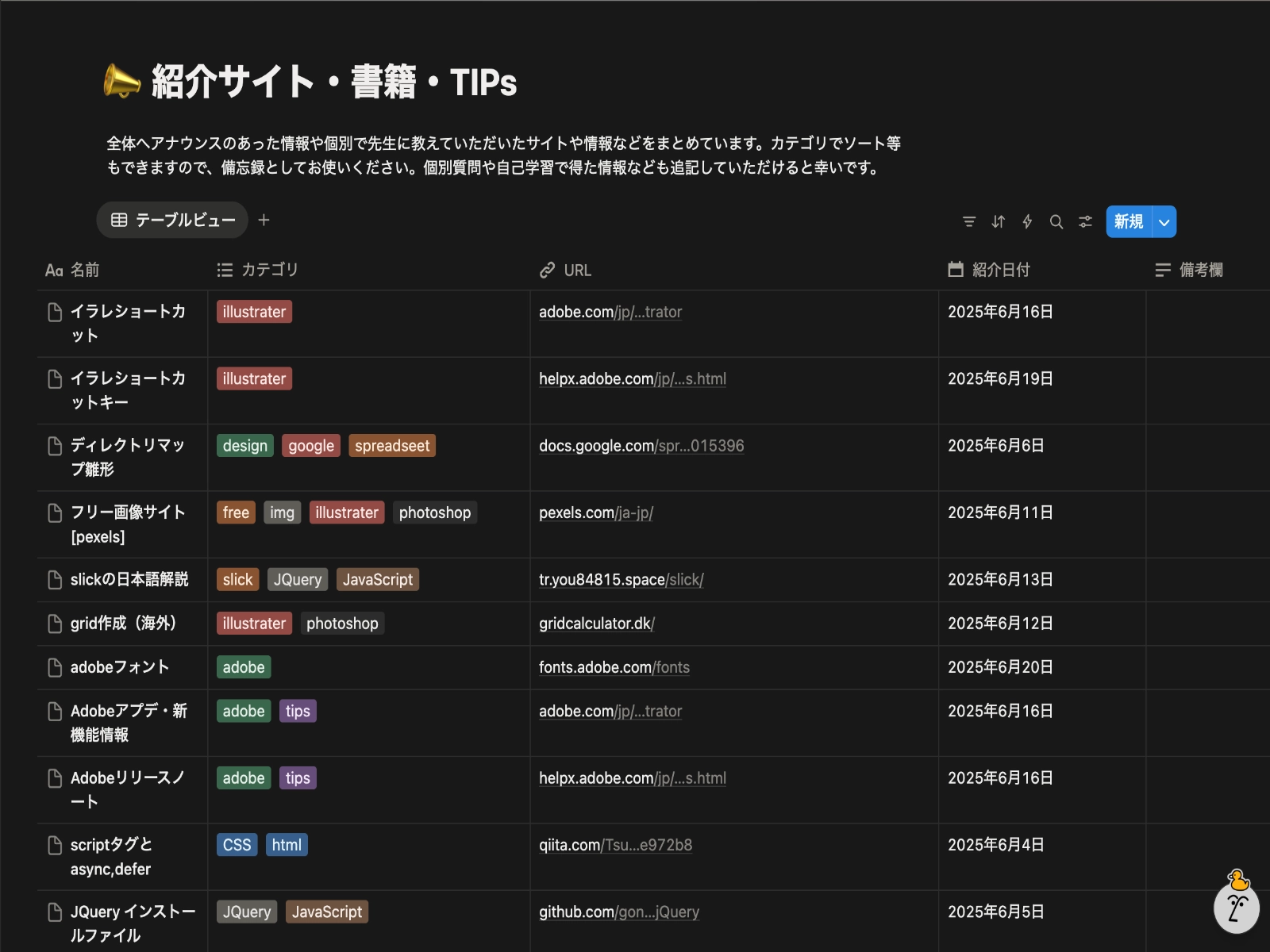 訓練校で紹介された知識の集約や、デザイン参考を保管しておくためのソース